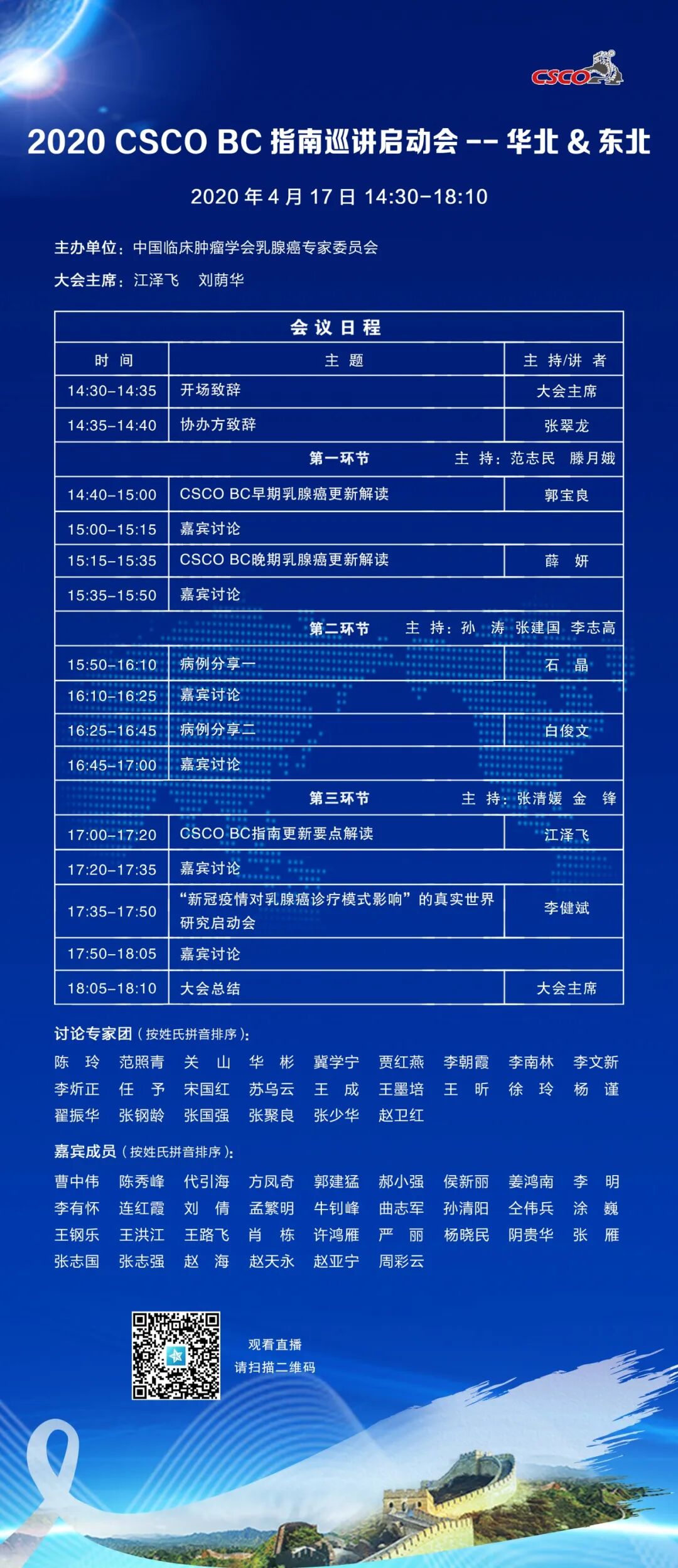 《中国临床肿瘤学会乳腺癌(CSCO BC)诊疗指南》以其权威、循证、严谨、及时和实用风格广受中国临床医生的欢迎,为帮助读者更好地理解指南更新要点,由中国临床肿瘤学会乳腺癌专家委员会主办的“2020 CSCO BC指南巡讲启动会——华北&东北”,将于2020年4月17日14:30线上直播,欢迎各位同道积极参加。